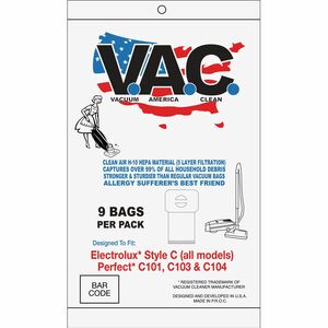 V.A.C. Perfect C101/C103 & Electrolux Vacuum Bags - 100 / Pack - White